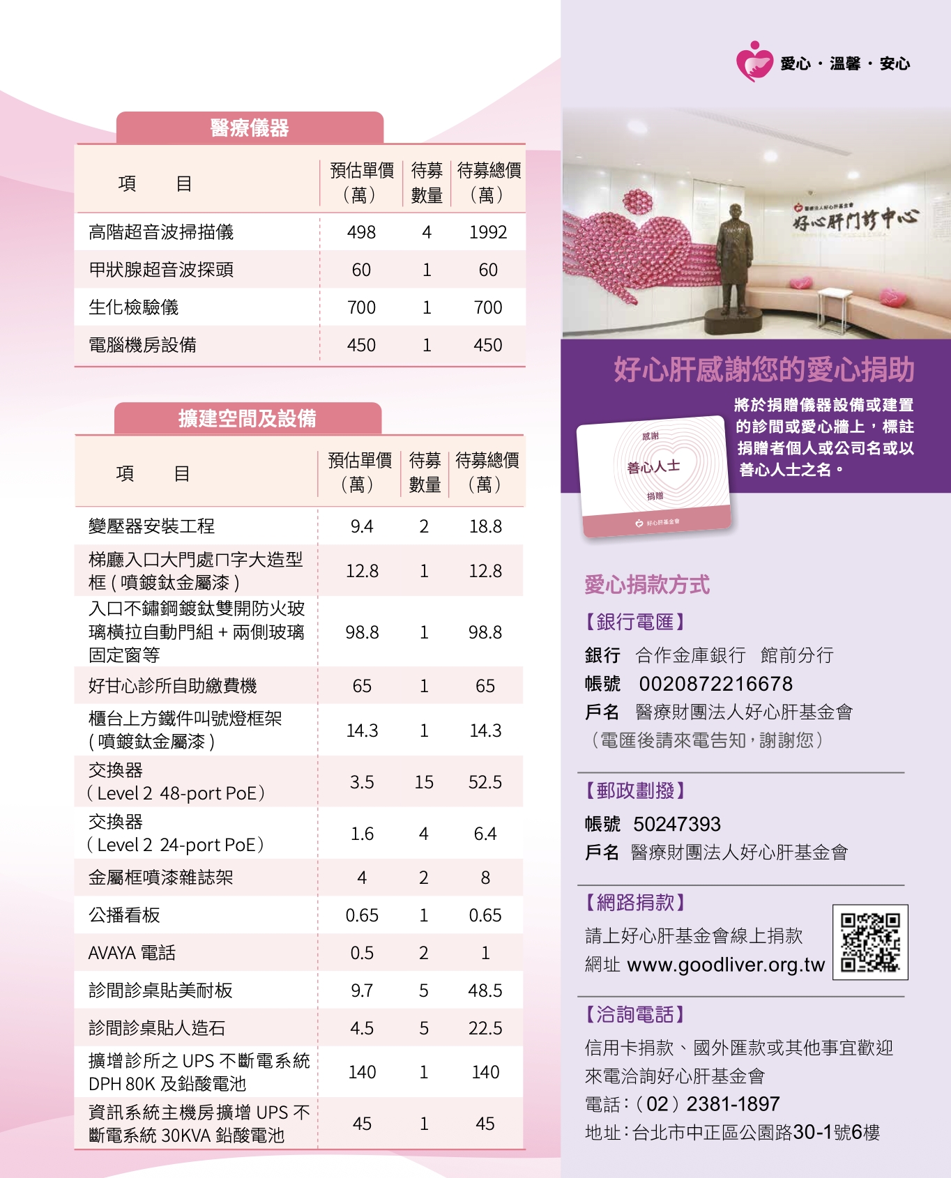 返回上一層好心肝門診中心擴建診間服務 亟需您的愛心襄助